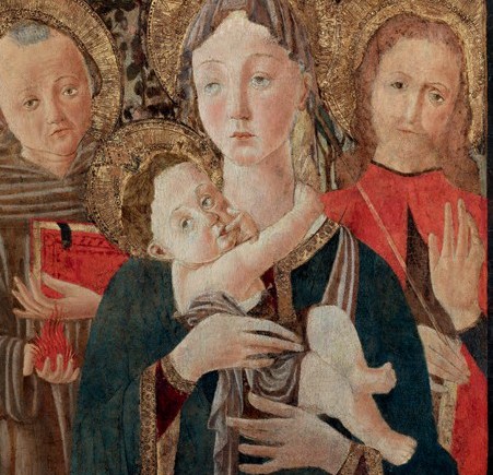 Visuel : Pier Francesco Fiorentino (attribué), Vierge à l’Enfant entre saint Antoine de Padoue et saint Sébastien, tempera sur bois, 63 x 47 cm, Paris, Musée Jacquemart-André