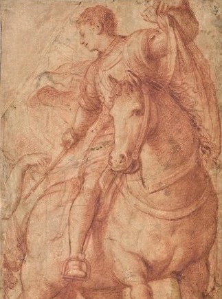 Visuel : Giovanni Antonio Sacchiense, dit Poderone, Saint Martin à cheval partageant son manteau, sanguine sur papier, vers 1528, Chantilly, musée Condé (Domaine de Chantilly), © RMN-Grand Palais (Domaine de Chantilly) / Michel Urtado
